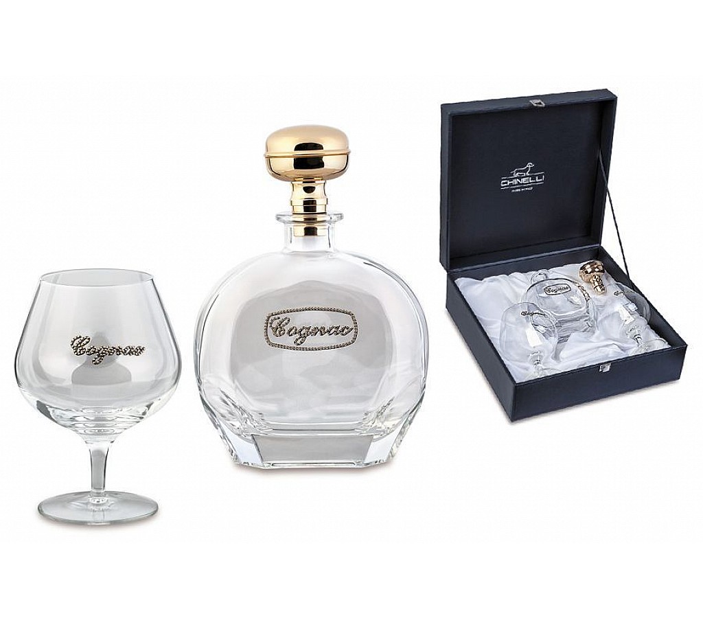 34162 Набор для коньяка в подарочной коробке штоф 0,7 л + 2 бокала 0,65 л