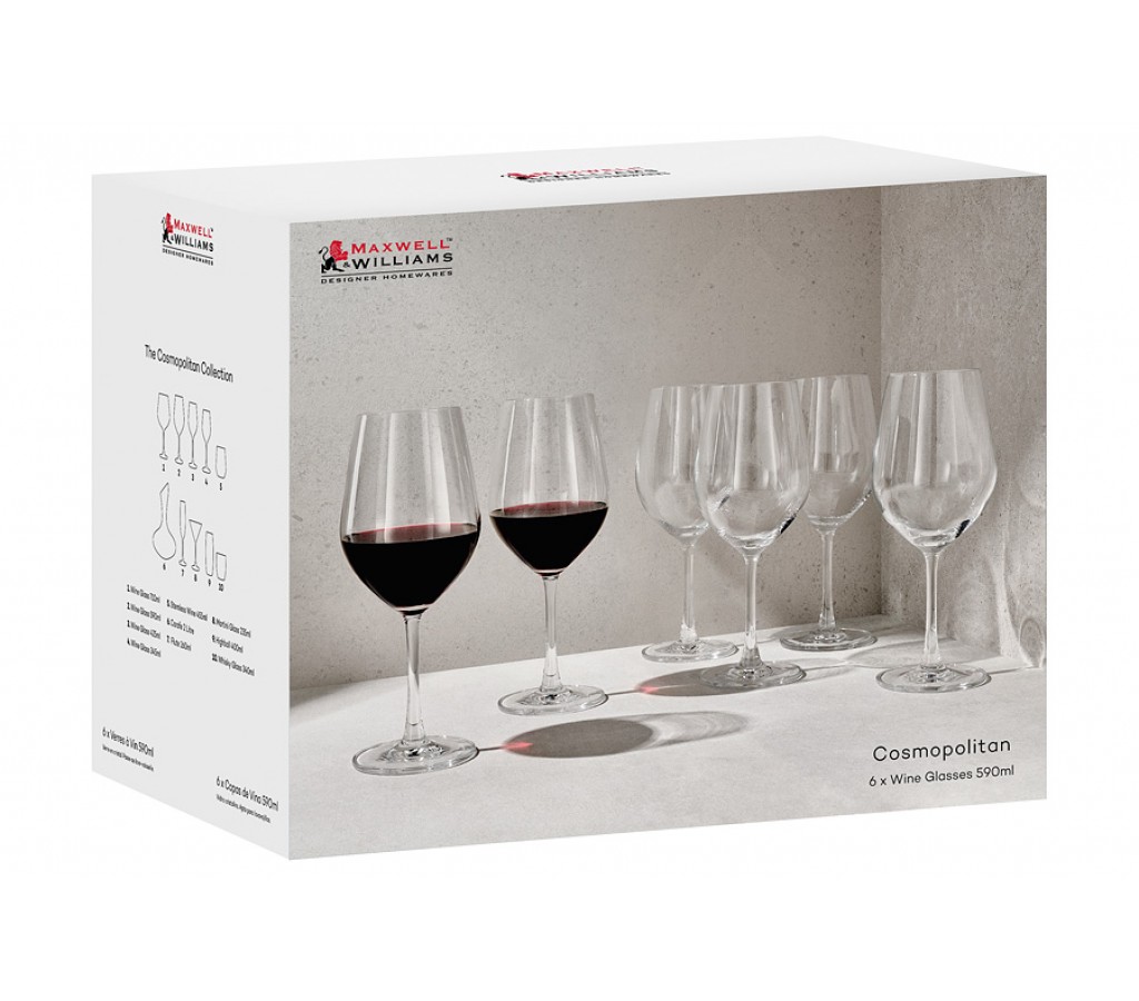 Набор бокалов для вина Cosmopolitan Maxwell & Williams 0,6 л 6 штук. Рекомендуется мыть руками, не абразивными моющими средствами. Подарочная коробка.