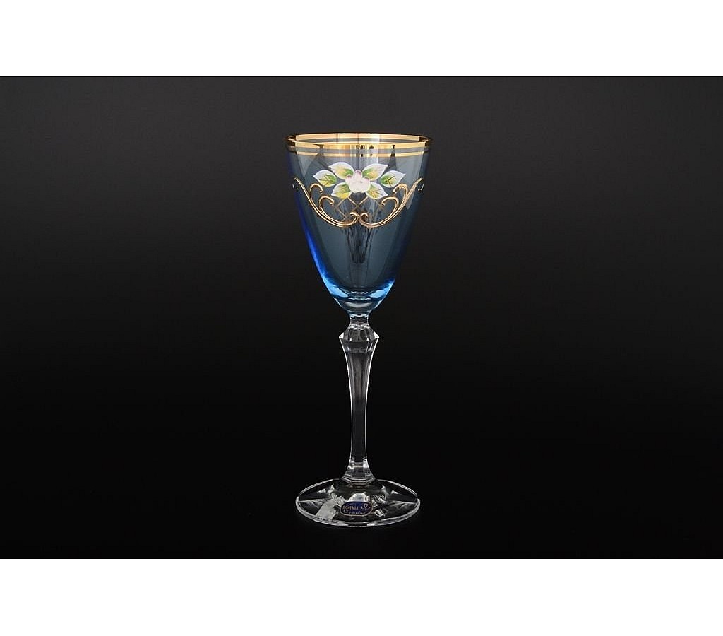Набор голубых бокалов для вина 250 мл 6 штук Bohemia Crystal