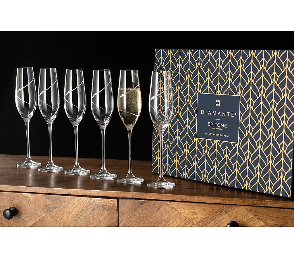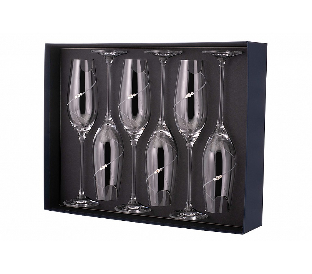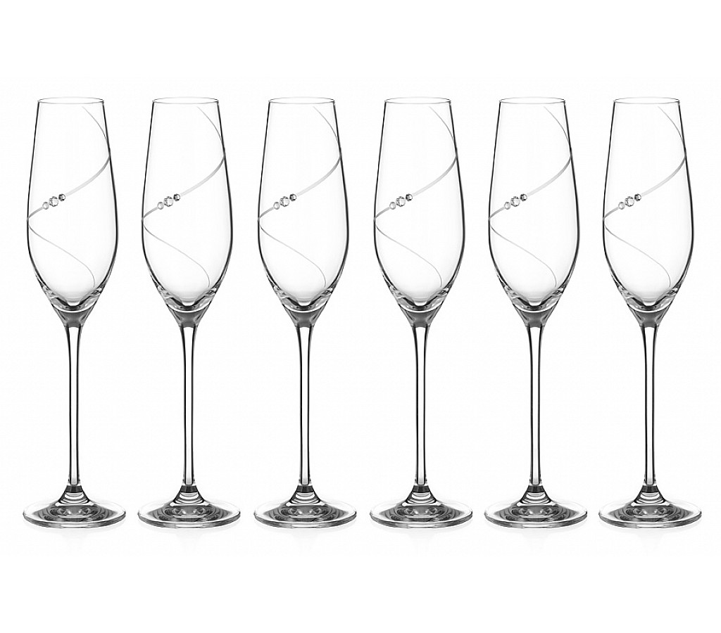 Набор бокалов для шампанского Силуэт Diamante 210 мл 6 шт. Подарочная упаковка. Рекомендуется ручная мойка мягкими моющими средствами. Не использовать в посудомоечной машине и СВЧ.