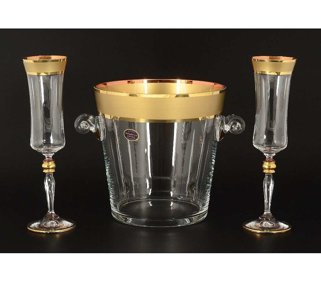 Набор для шампанского (ведерко и 2 фужера) Матовая полоса B-G фон Bohemia Crystal