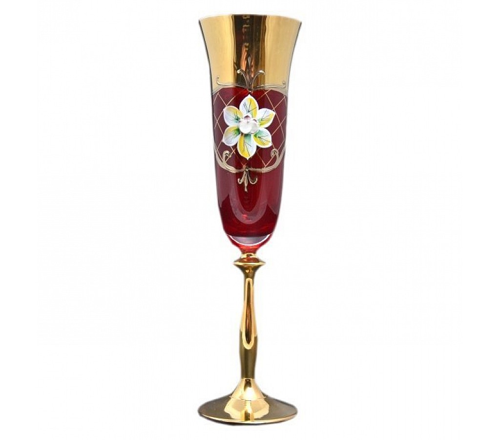 | Набор фужеров для шампанского Лепка Красная U-R золотая ножка Bohemia Crystal 180 мл | |