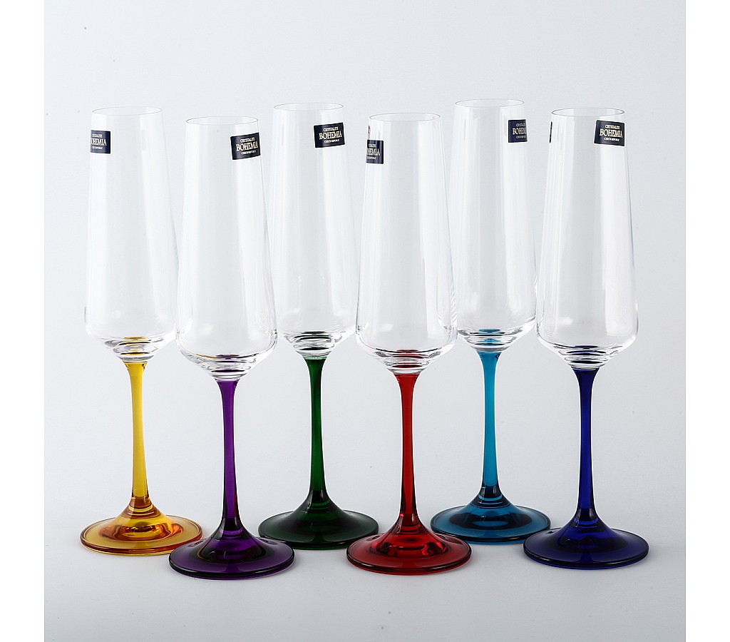 Набор фужеров для шампанского 160 мл цветной Наоми Crystalite Bohemia 6 шт