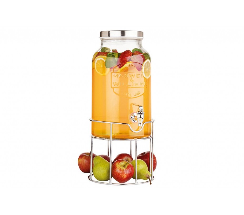 Лимонадник с краном объемом 5.6 л укомплектован оригинальной подставкой, что позволяет удобно подносить и наполнять бокалы простым поворотом краника. В нижнюю часть подставок можно красиво положить фрукты для приготовления напитка. Подарочная упаковка.