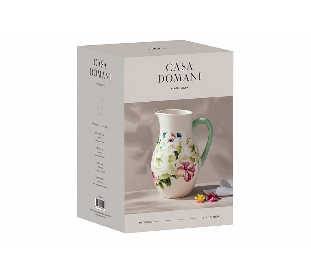 Кувшин Магнолия 2,4 л. Подарочная упаковка. Мыть тёплой водой с применением жидких моющих средств. Можно использовать в СВЧ и в посудомоечной машине.