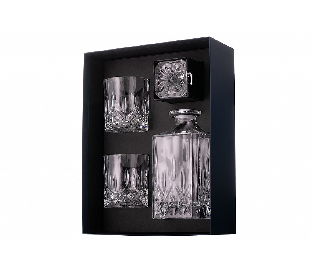 Набор для виски Дорчестер Diamante 3 предмета. Подарочная упаковка. Рекомендуется ручная мойка мягкими моющими средствами. Не использовать в посудомоечной машине и СВЧ.