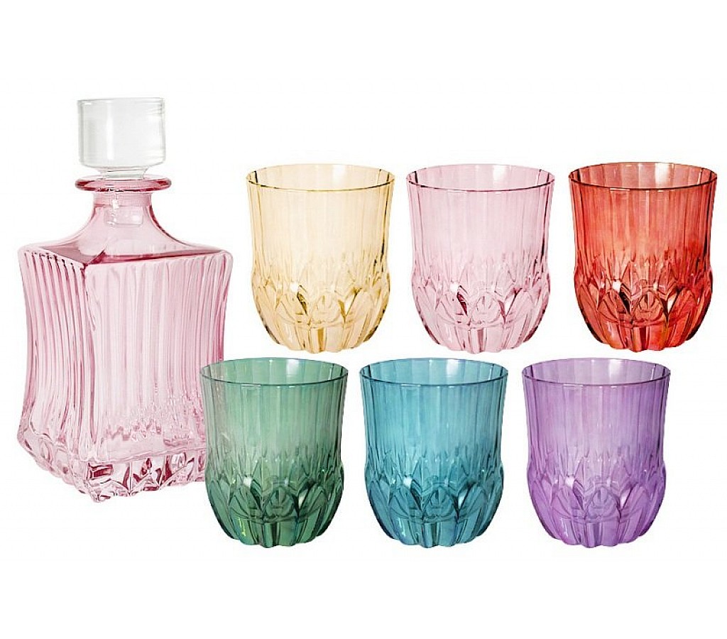 Набор для виски: штоф + 6 стаканов Адажио, цветная 0.6л + 0.3л