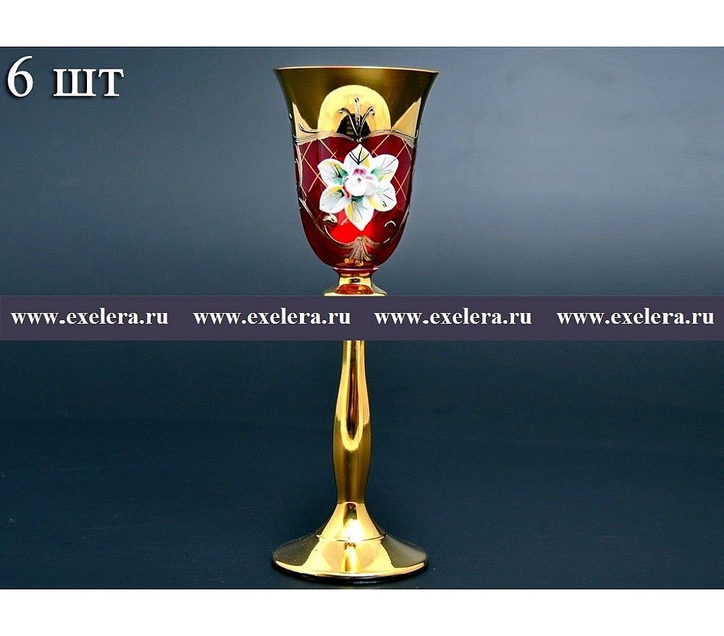 | Набор рюмок для водки 60 мл Bohemia Лепка Красная U-R золотая ножка | |