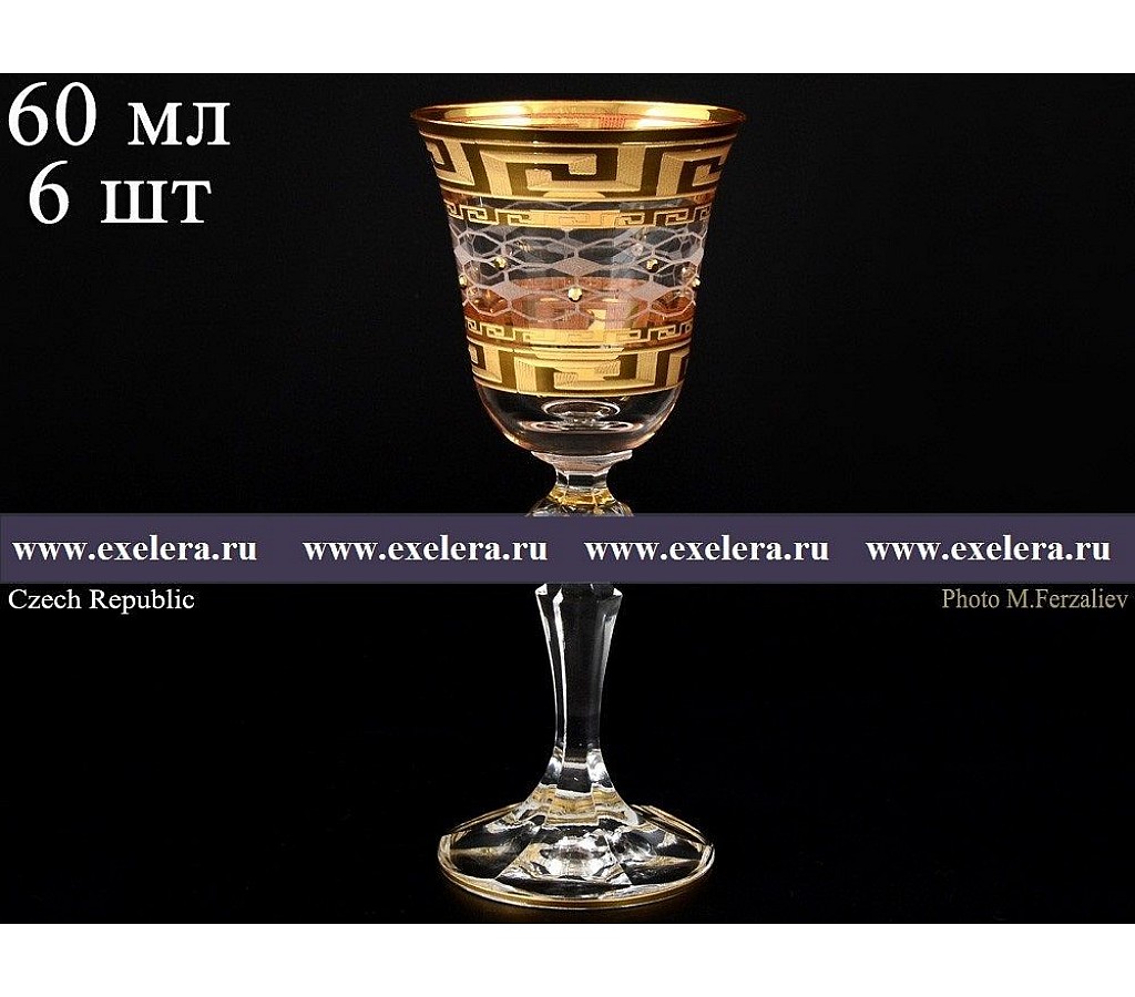 | Набор рюмок для водки 60 мл Bohemia Костка Стразы золотые R-G 6 шт | |