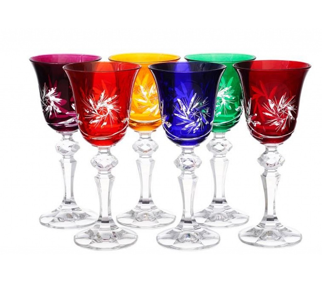 Набор рюмок для водки из 6 штук объемом 60 мл от чешской компании Bohemia Crystal, изготовлен из цветного хрусталя.Цвета рюмок: фиолетовый,желтый,синий,красный,бордовый ,зеленый.