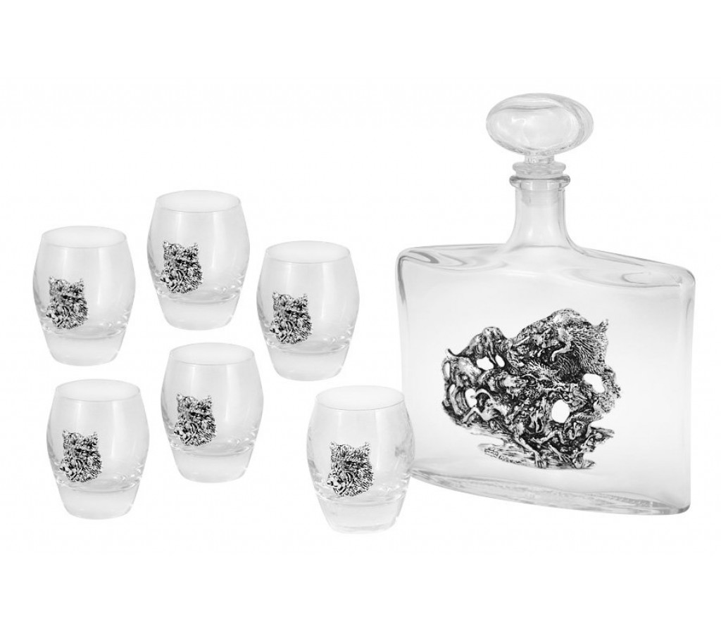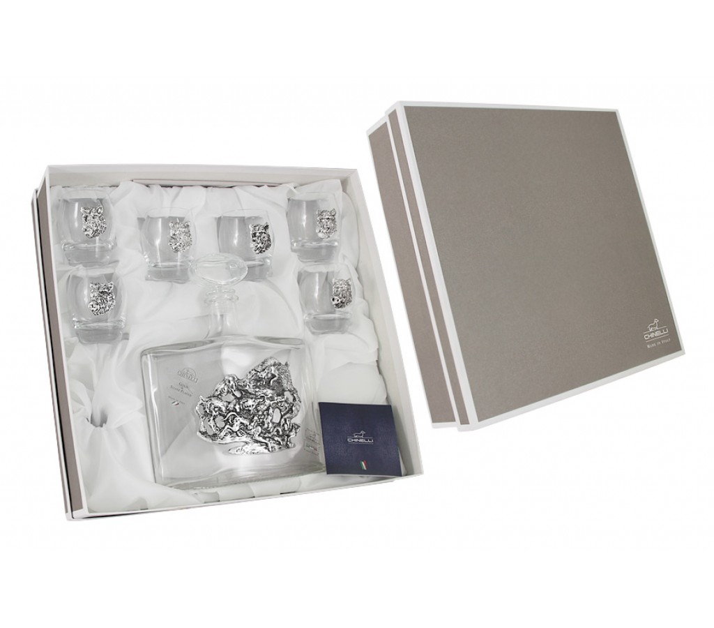 Набор из штофа и 6-ти стопок для водки Кабан от итальянаского бренда Gamma. Размер: штоф 0.5л + стопки 6 шт. 0.075л. Подарочная упаковка.