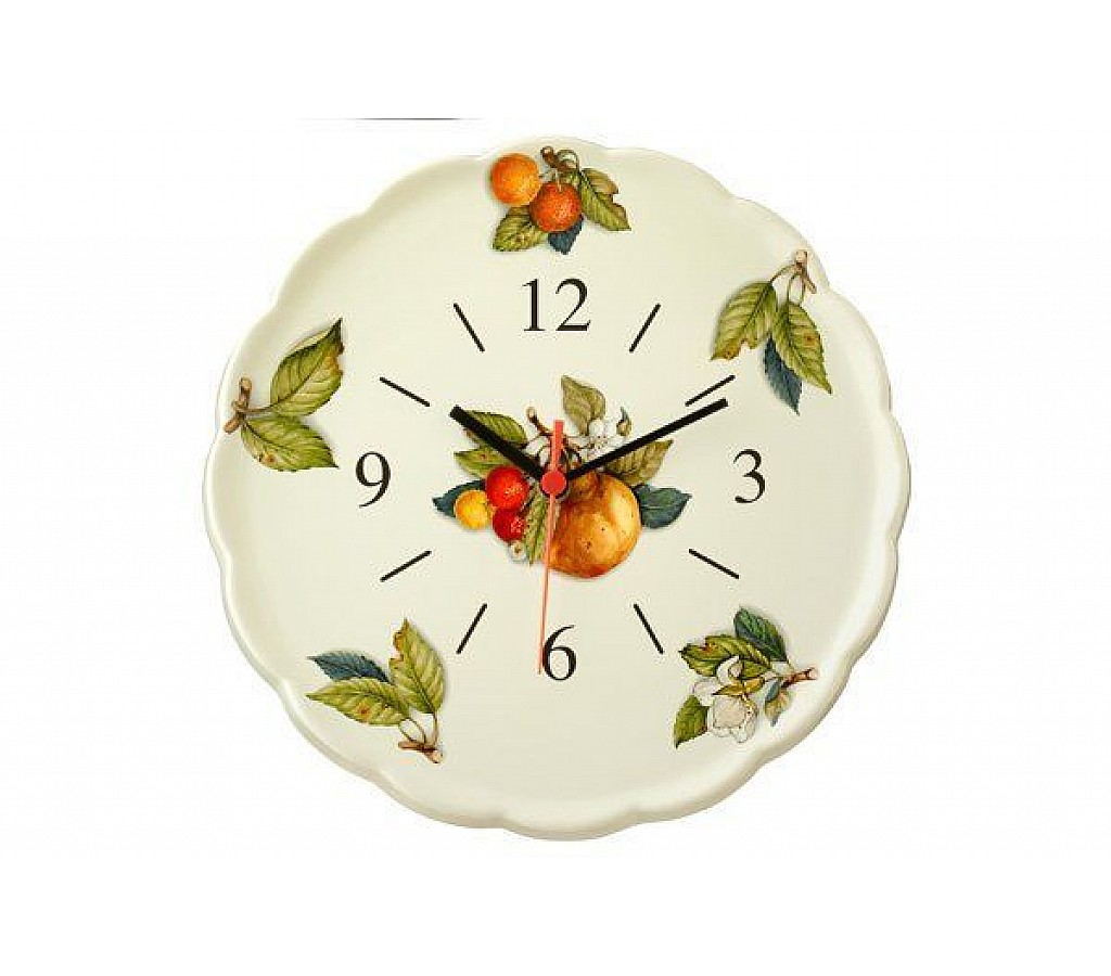 Круглые кварцевые настенные часы от итальянского производителя Nuova Cer будут отлично смотреться на кухне. Они изготовлены из керамики высокого качества. Бежевый цвет часов с красивыми изображениями фруктов наполнит интерьер уютом и комфортом.