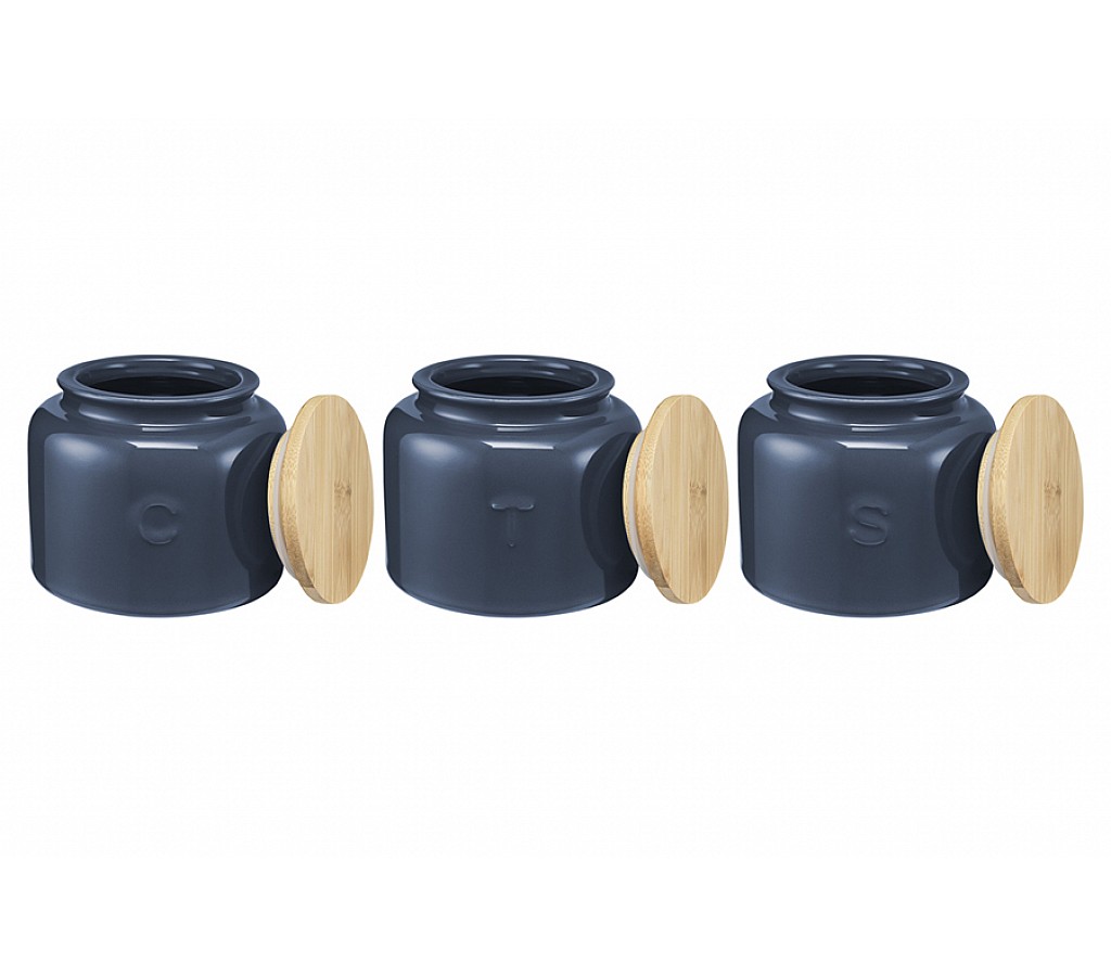 Банка для сыпучих продуктов, 600 мл, 3 шт, фарфор P/дерево, круглая, синяя, Indulgence. Подарочная упаковка. Состав: Банка для сыпучих продуктов 600 мл - 3 шт, крышка с силиконовым уплотнителем - 3 шт. Мыть тёплой водой с применением жидких моющих средств. Можно мыть в посудомоечной машине (кроме крышки).
