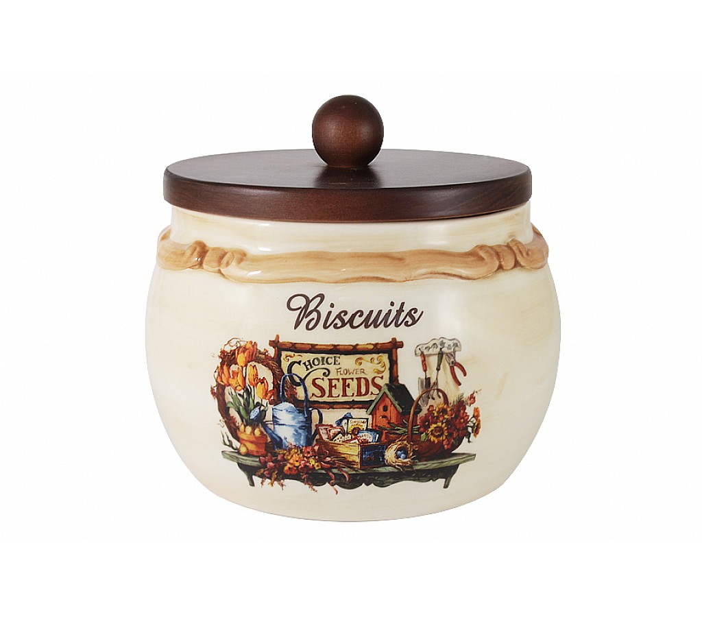 Банка для сыпучих продуктов с деревянной крышкой (большая) Садовые цветы 2,8 л