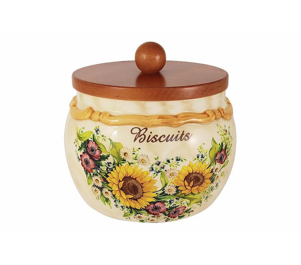 Банка для сыпучих продуктов с деревянной крышкой (большая) Подсолнухи Италии 2,8 л