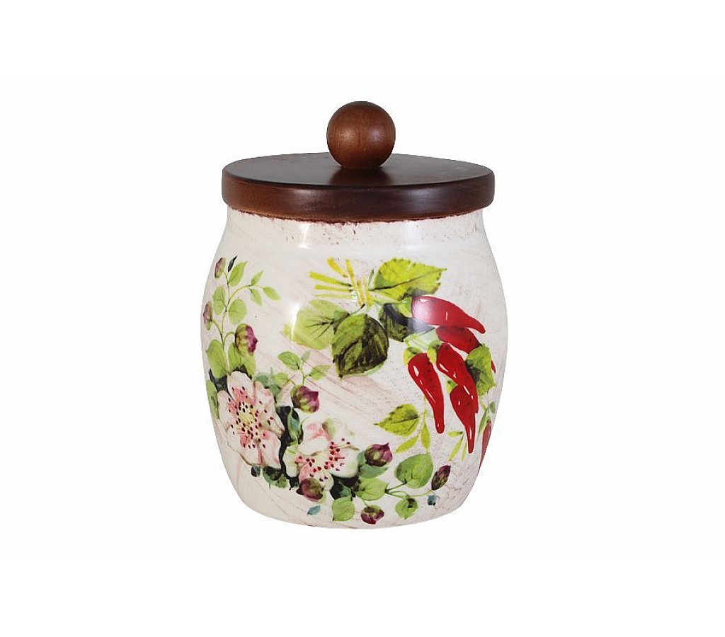 46461 Банка для сыпучих продуктов с деревянной крышкой Овощное ассорти h19см