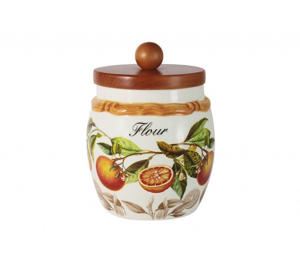 Банка для сыпучих продуктов с деревянной крышкой (мука) Апельсины LCS