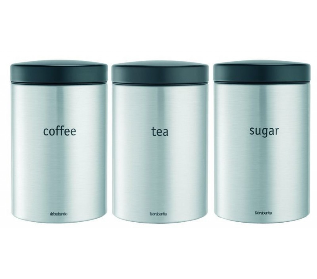 Набор контейнеров из 3-х штук Brabantia для сыпучих продуктов позволяют дольше сохранить Ваш кофе, чай, макаронные изделия и др. продукты свежими.