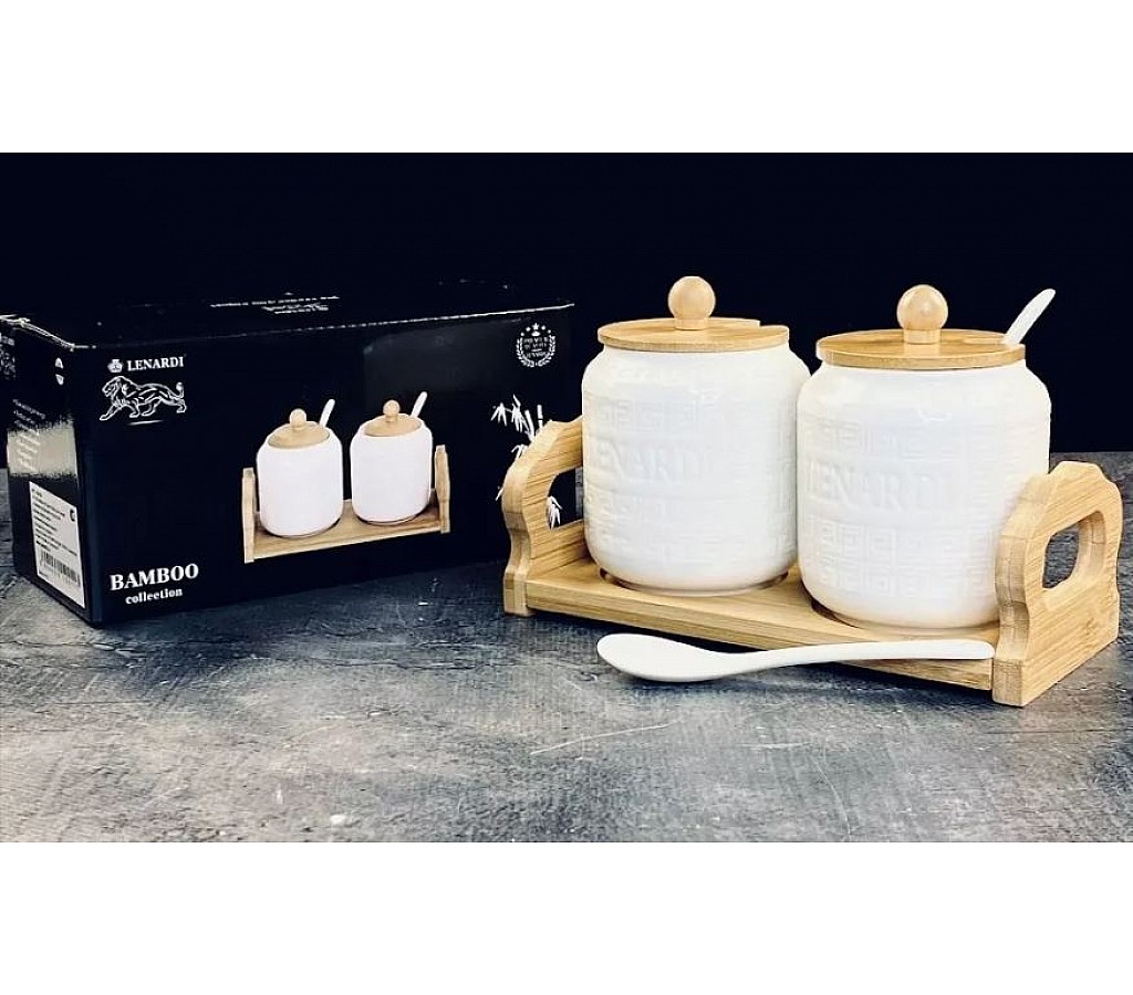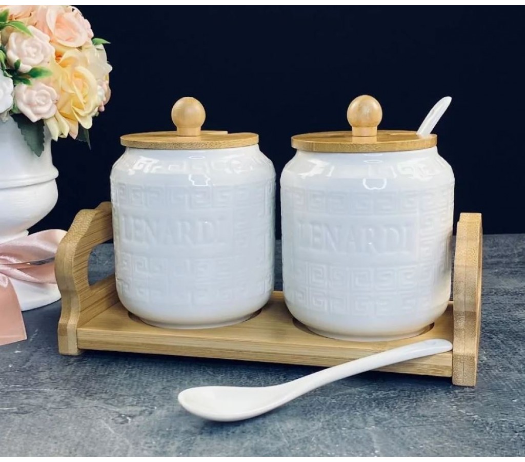 | Набор из 2 банок 350 мл для специй с крышками и ложками на подставке Bamboo Lenardi | |