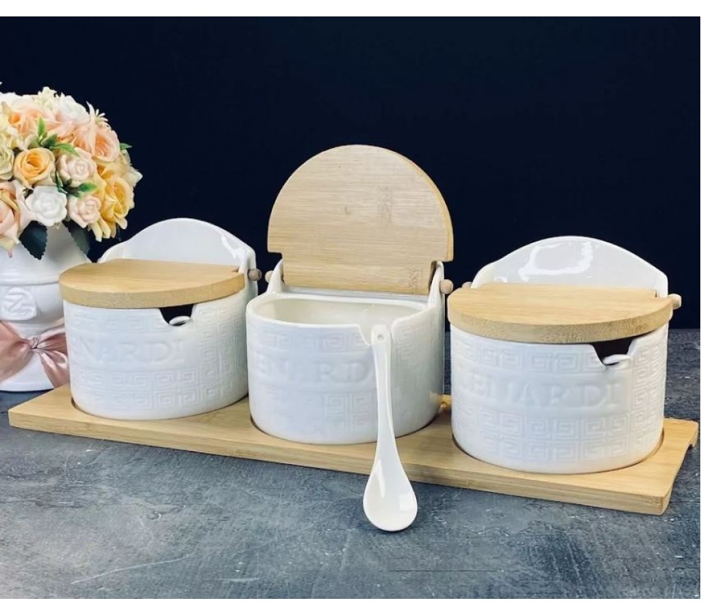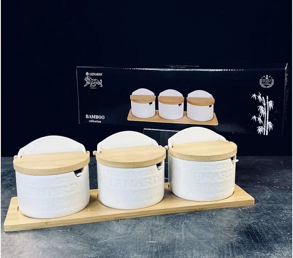 | Набор из 3 банок для специй 420 мл с крышками и ложками на подставке Bamboo Lenardi | |