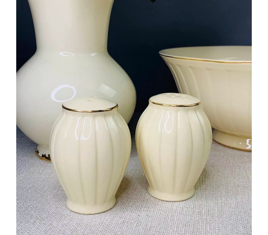 Набор солонка и перечница Marzipan Lenardi. Не рекомендуется мыть в посудомоечной машине, по причине возможного повреждения золотого декоративного покрытия.