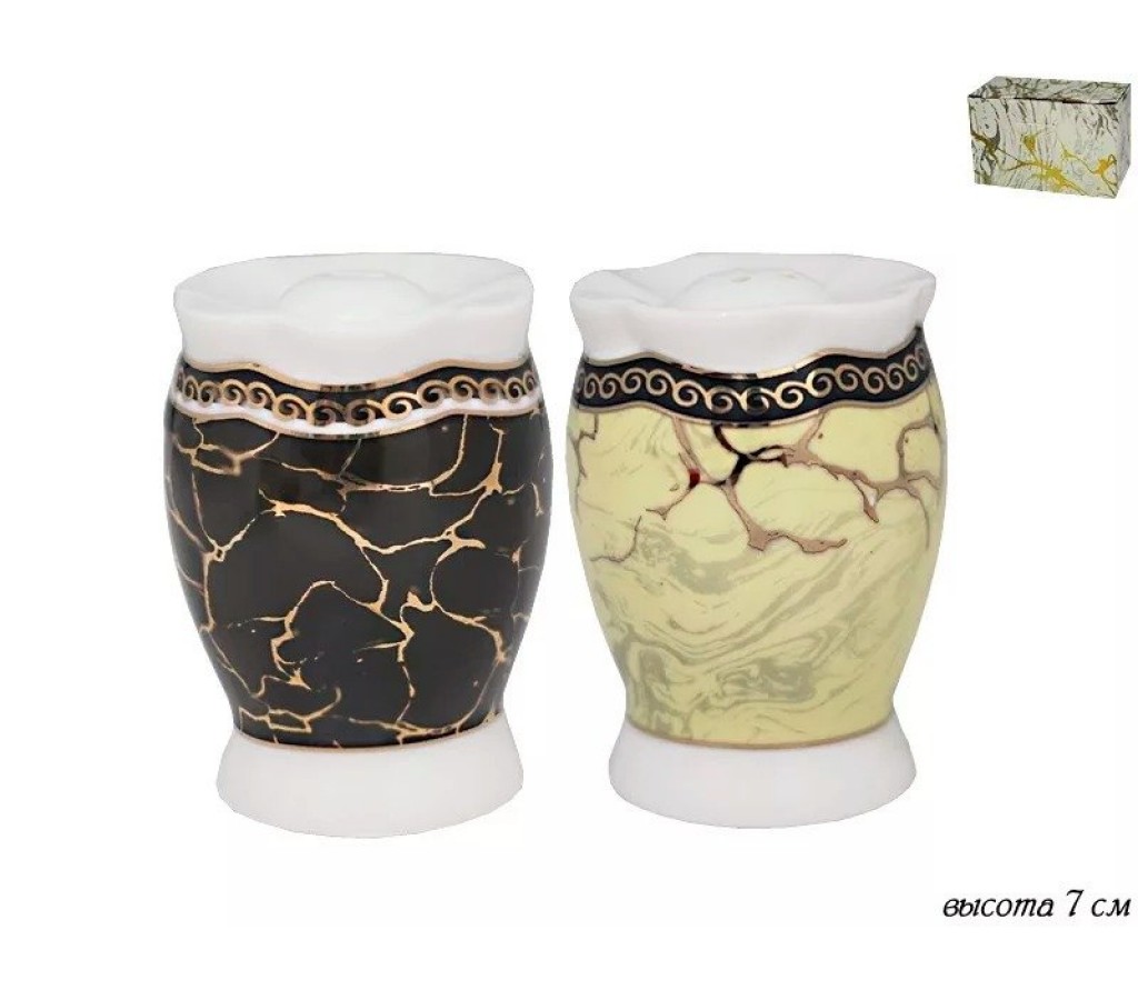 Набор солонка и перечница Мрамор Lenardi. Рекомендуется мыть руками. Подарочная коробка.