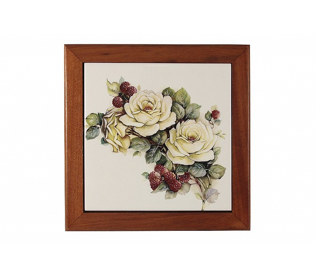 Подставка под горячее из дерева с керамической вставкой Роза и малина 19х19 см