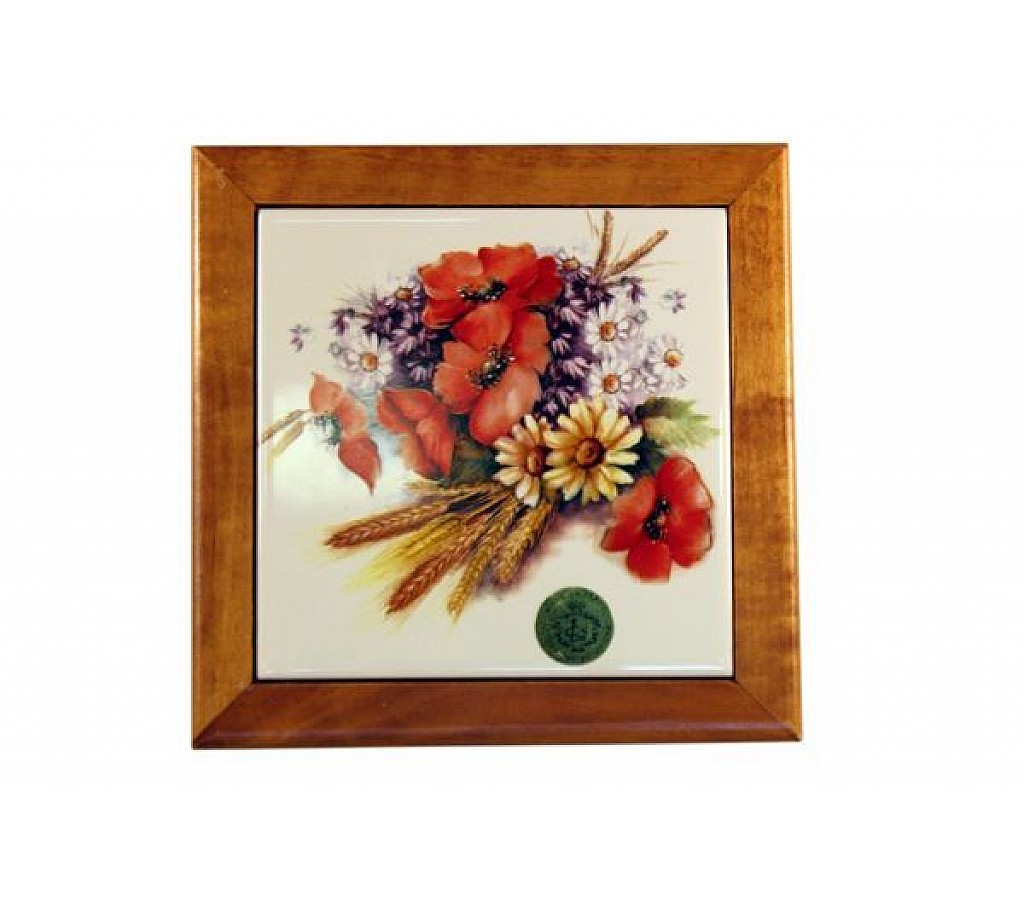 Подставка под горячее из дерева с керамикой Маковый луг 19х19см