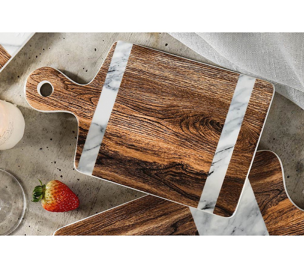 Доска сервировочная Wood&Marble, 25х14 см. Мыть тёплой водой с применением ЖМС. Можно использовать в СВЧ и мыть в посудомоечной машине