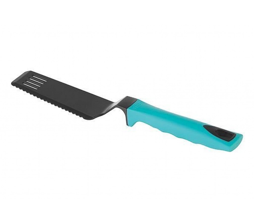Уникальный дизайн, сохраняющий стол в чистоте. Высококачественный термостойкий нейлон (210°C). Безопасно для антипригарных покрытий. Эргономичная прорезиненная ручка. Гарантия 5 лет.