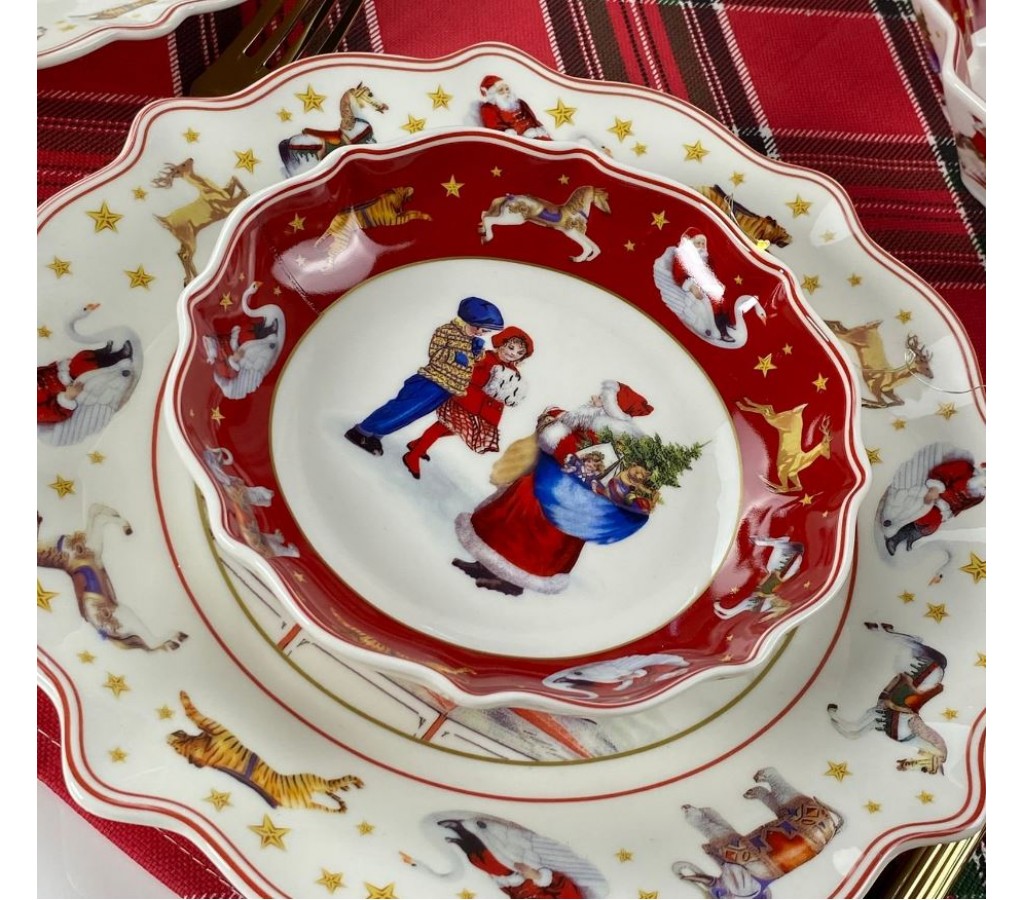 Коллекция Новый год (Новогодний) выполнена из высококачественного фарфора и широко представлена различными оригинальными предметами сервировки, которые неизменно создадут ощущение Новогоднего Праздника. В коллекции широкий ассортимент салатников, блюд, тарелок, чайных наборов, кружек и сервизов. Посуда очень практична, ее можно мыть в посудомоечной машине и использовать в СВЧ печи. Все предметы коллекции имеют подарочную упаковку.