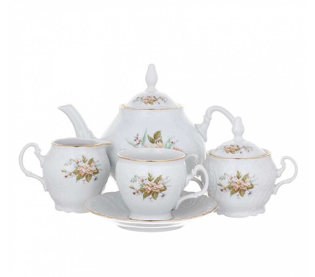 Чайный сервиз Зеленый цветок Bernadotte на 6 персон 15 предметов 240 мл