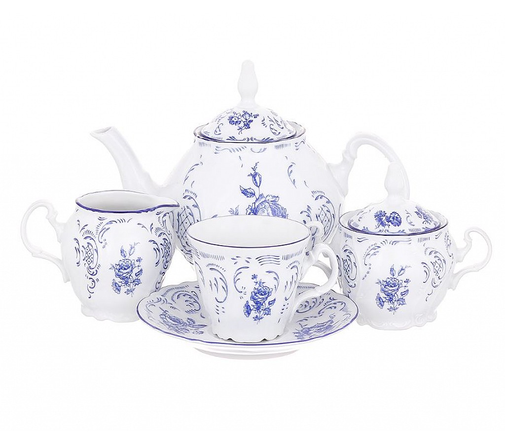 Чайный сервиз 240 мл Синие розы Bernadotte на 6 персон 15 предметов