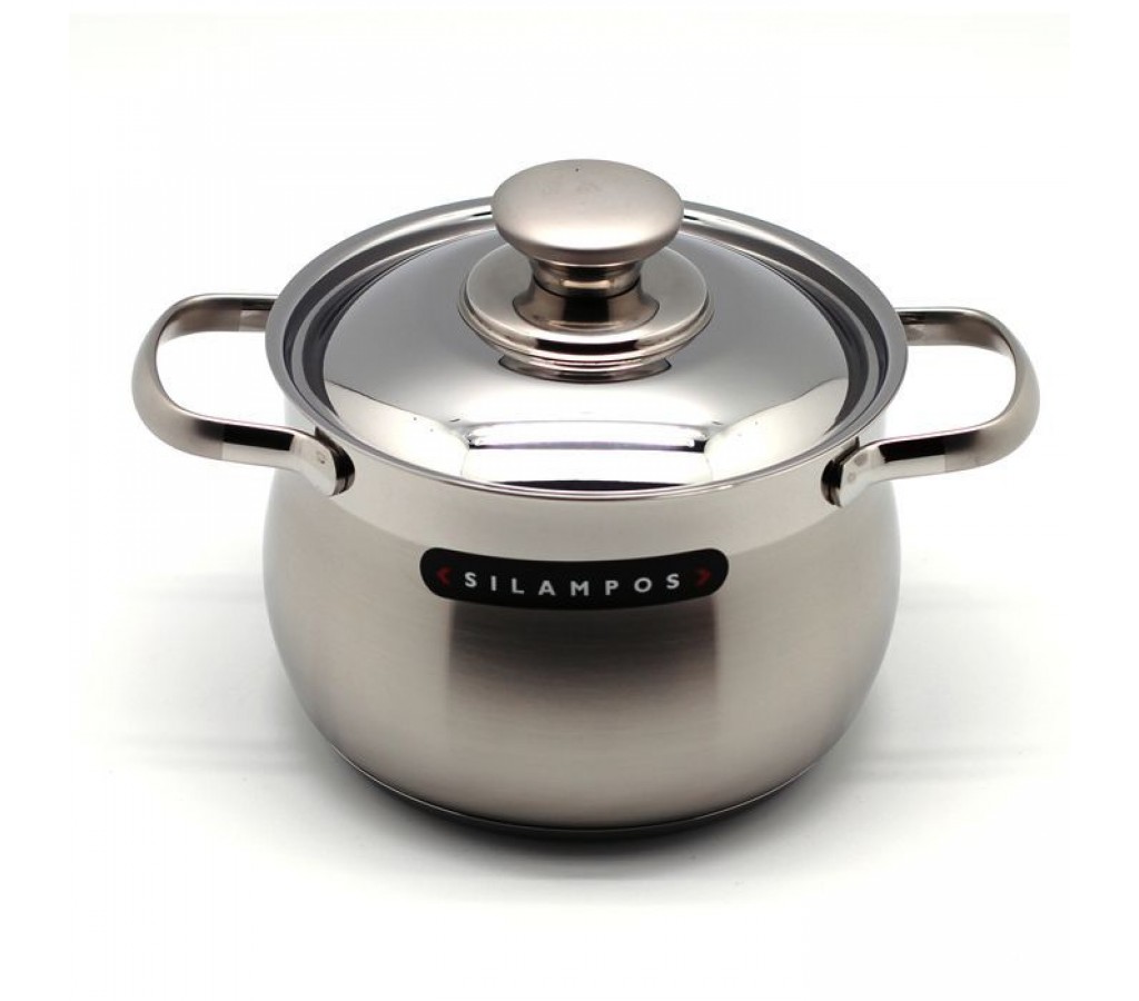Кастрюля Silampos "Венеция" изготовлена из высококачественной нержавеющей стали с матовой внутренней и внешней полировкой. Термическое дно Impact Disc Plus выдерживает температуру до двух раз превосходящую максимальную температуру, необходимую для приготовления пищи. Изделие оснащено прочными стальными ручками. Специальные изогнутые бортики посуды обеспечивают легкое и аккуратное выливание жидкости. Крышка, выполненная из нержавеющей стали, плотно прилегает к краю посуды.