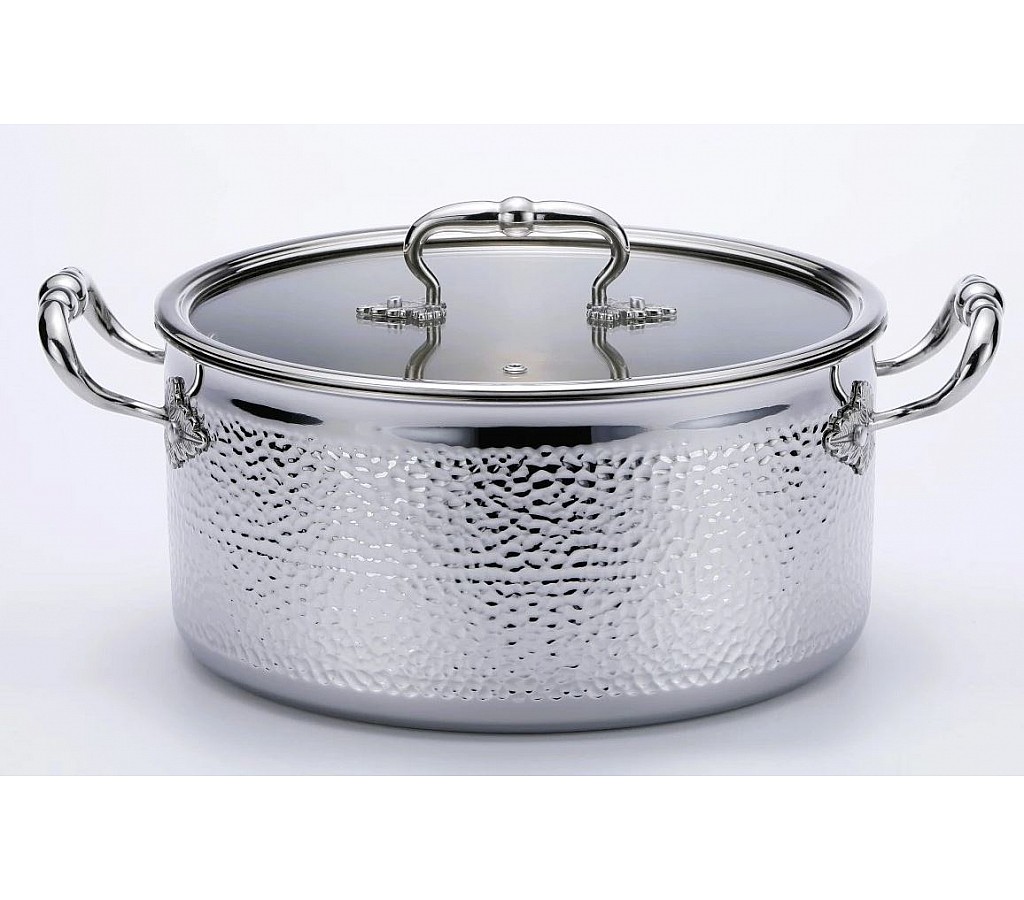 Коллекция посуды для приготовления EMBOSS. Посуда изготовлена из нержавеющей стали с утолщенными стенками. Двойное дно равномерно разогревает посуду, подходит для всех видов варочных поверхностей. Посуда декорированная тонкой чеканкой ручной работы, крышки стеклянные с ободком из нержавеющей стали, ручки с кованными декоративными элементами. Все предметы коллекции имеют индивидуальную подарочную коробку.Каждый из этих элементов посуды для приготовления не только сохраняет полезные свойства в процессе приготовления еды, но и обеспечивает вас по-настоящему вкусными блюдами!