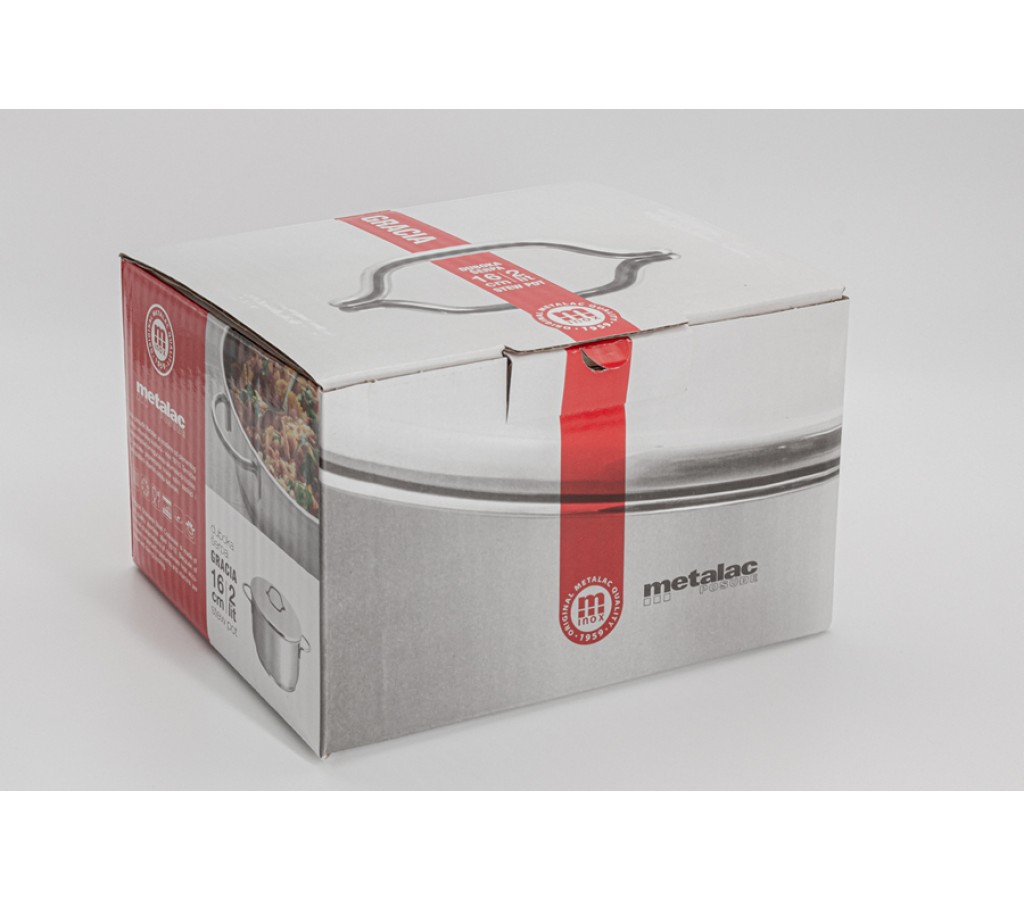 Кастрюля Грация Metalac 16 см, объем 2 л, крышка металлическая. Трёхслойное дно толщиной 8-9 мм, толщина стенок – 0,7 - 0,8 мм. Глянцевая внешняя поверхность. Подходит для всех типов плит, включая индукционные. Металлическая крышка с эффектом «нет пара». Можно готовить практически без жидкости и масла. Мыть жидким моющим средством без абразивных веществ и металлических губок. Можно мыть в ПММ. Пустую посуду не нагревать до высоких температур. Не класть соль в холодную воду. Подарочная коробка.