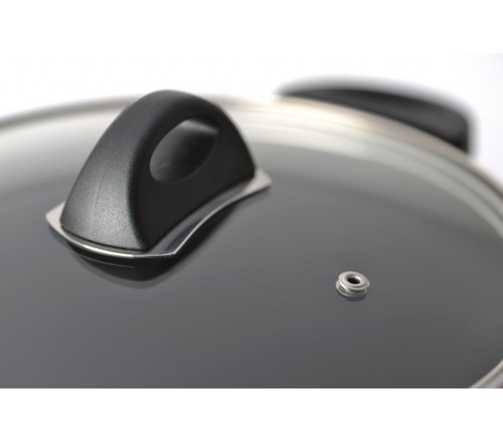 Прочная и простая в использовании посуда с быстрым и равномерным распределением тепла. Многослойное и армированное, свободное от ПФОК антипригарное покрытие для удобного извлечения пищи и легкой чистки. Не содержит ни свинца, ни кадмия. Крышка обеспечивает эффективное закрытие: тепло сохраняется внутри кастрюли, что приводит к более быстрому разогреву, три вентиляционных отверстия предотвращают выплескивание. Благодаря стеклянной крышке можно наблюдать за ингредиентами в кастрюле. Не нужно поднимать крышку, растрачивая энергию и вкусовые качества. Не нагревающиеся ручки для дополнительного комфорта и безопасности.