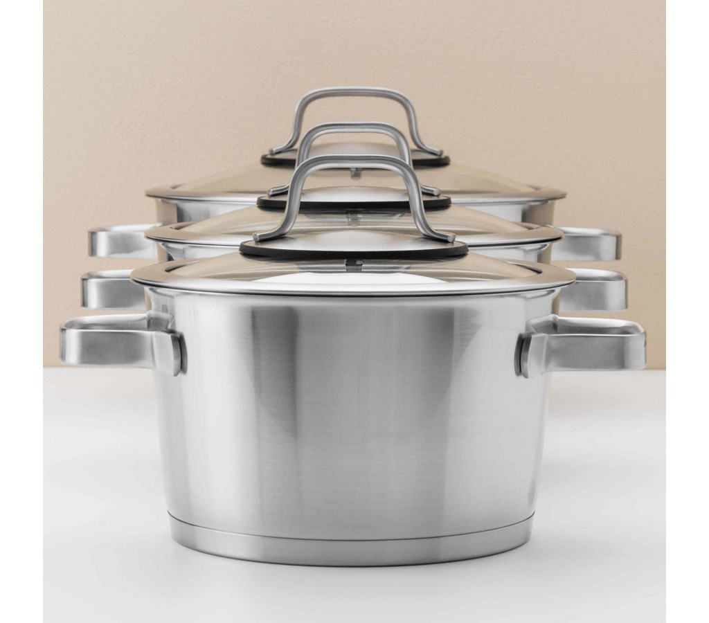 Высококачественная нержавеющая сталь 18/10 для повышенной прочности и гигиены. Конструкция дна делает возможным энергоэффективное приготовление пищи и равномерное распределение тепла по всей поверхности. Благодаря стеклянной крышке можно наблюдать за ингредиентами в кастрюле. Не нужно поднимать крышку, растрачивая энергию и вкусовые качества. Эргономичная ручка обеспечивает безопасный захват и удобство в поднятии кастрюли. Подходит для любых типов плит, включая индукционные. Подходит для посудомоечной машины.