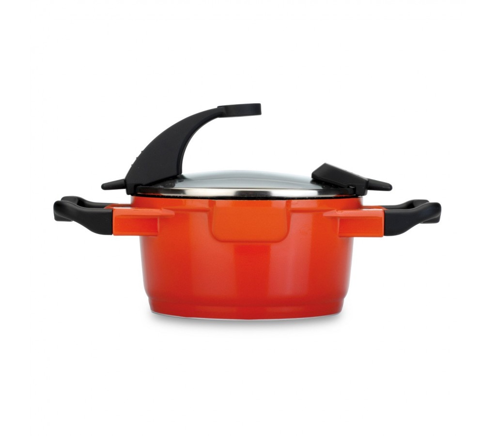 Кастрюля 16см Virgo BergHOFF. Оригинальная крышка предлагает ряд хорошо продуманных функций. Эти большие эргономичные ручки крышки не нагреваются в процессе приготовления. Продуманный дизайн помещает крышку на кастрюле таким образом, что во время приготовления и подачи одна рука всегда остается свободной. Другая вставка, очень похожая на ту, которая удерживает крышку вертикально на кастрюле, предлагает дополнительную функциональность, когда крышка лежит на кастрюле: просто положите на них большие пальцы для удобного и безопасного слива воды. Чтобы сделать слив ещё удобнее по двум сторонам крышки предусмотрены отверстия разного диаметра для разного вида продуктов и сливные носики на корпусе кастрюли. Причудливое пятнистое внутреннее антипригарное покрытие экологично и нетоксично (свободно от ПФОТ и ПТФЭ), с отличными антипригарными свойствами, позволяет готовить с минимальным количеством жиров или совсем без них. Это покрытие имеет также высокую устойчивость к царапинам и упрощает чистку. Идеальный выбор для низкожирового подрумянивания пищи, тушения и жарки. Прочная и простая в использовании посуда с быстрым и равномерным распределением тепла. Благодаря стеклянной крышке можно наблюдать за ингредиентами в кастрюле. Не нужно поднимать крышку, растрачивая энергию и вкусовые качества.