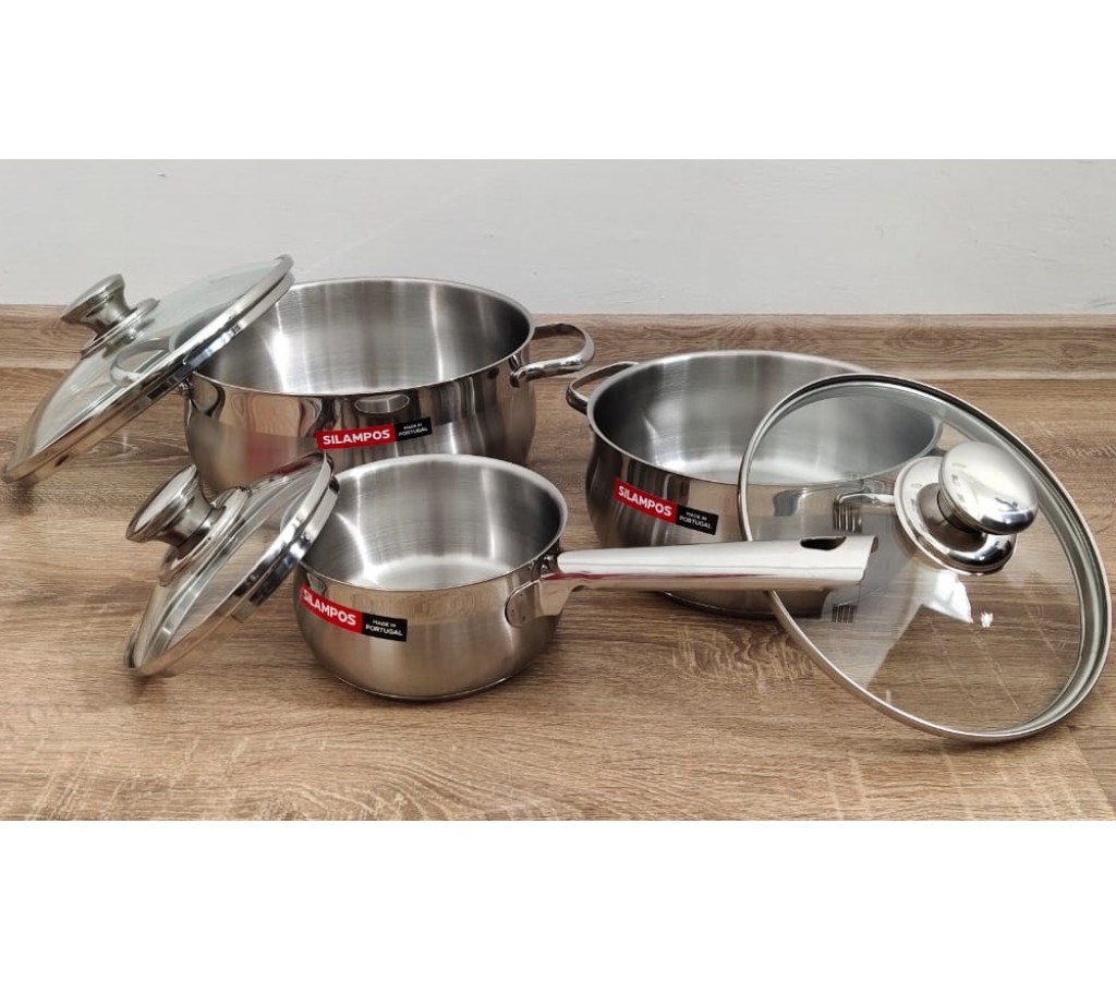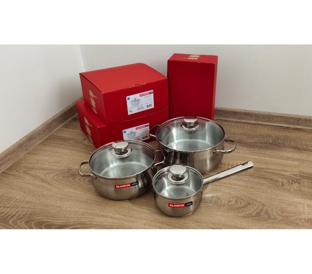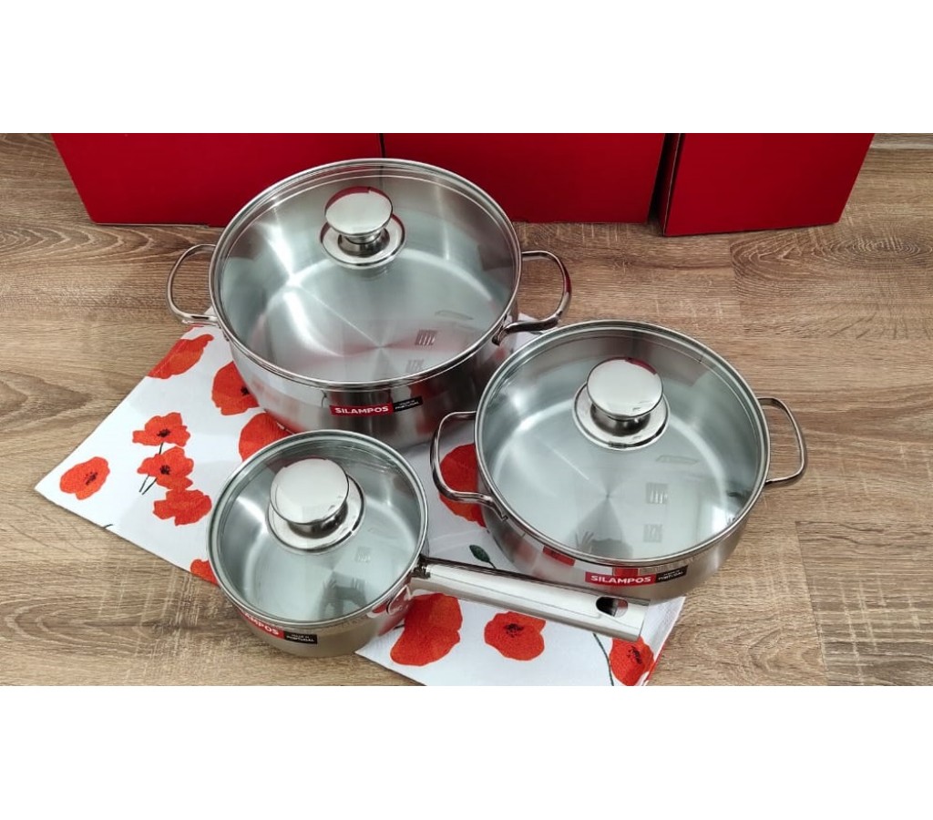 Набор посуды из нержавеющей стали Роял Silampos 3 предмета со стеклянными крышками.
