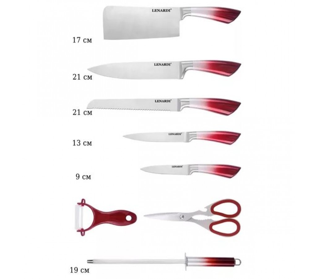 | Набор ножей Sharp Lenardi 9 предметов на подставке красный | |