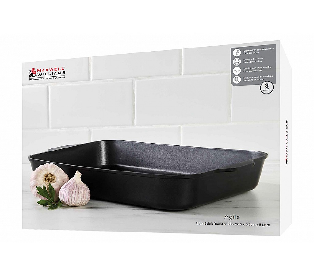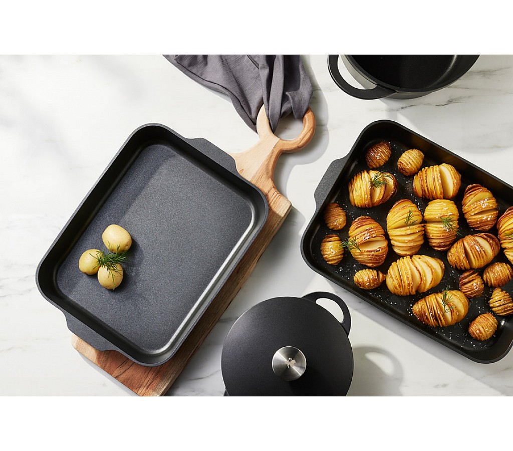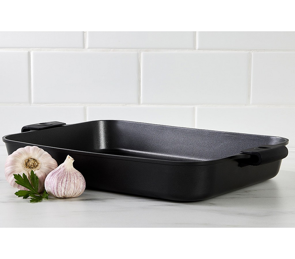 Форма для запекания Agile, чёрная, 38x28,5x5,5 см. Форма для запекания из литого алюминия с антипригарным покрытием. Для всех типов плит, включая индукционные. Можно мыть в ПММ. Использовать в духовке до 210 градусов