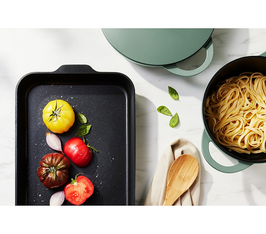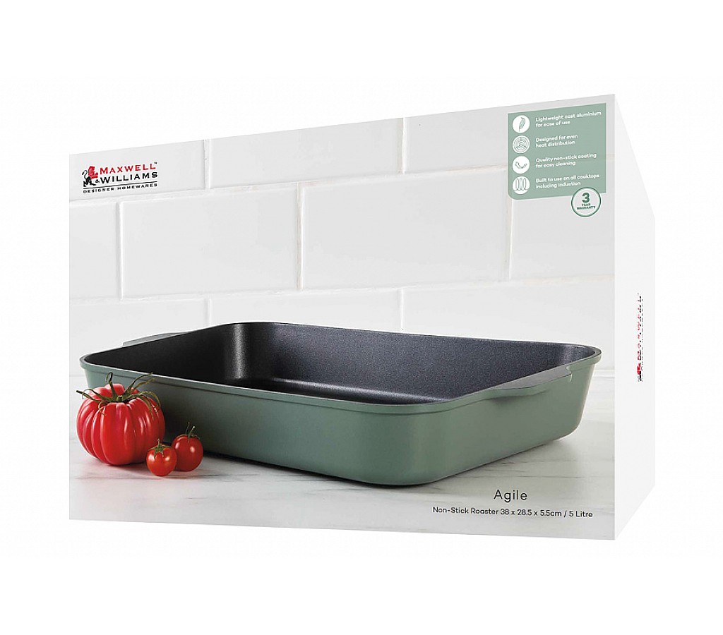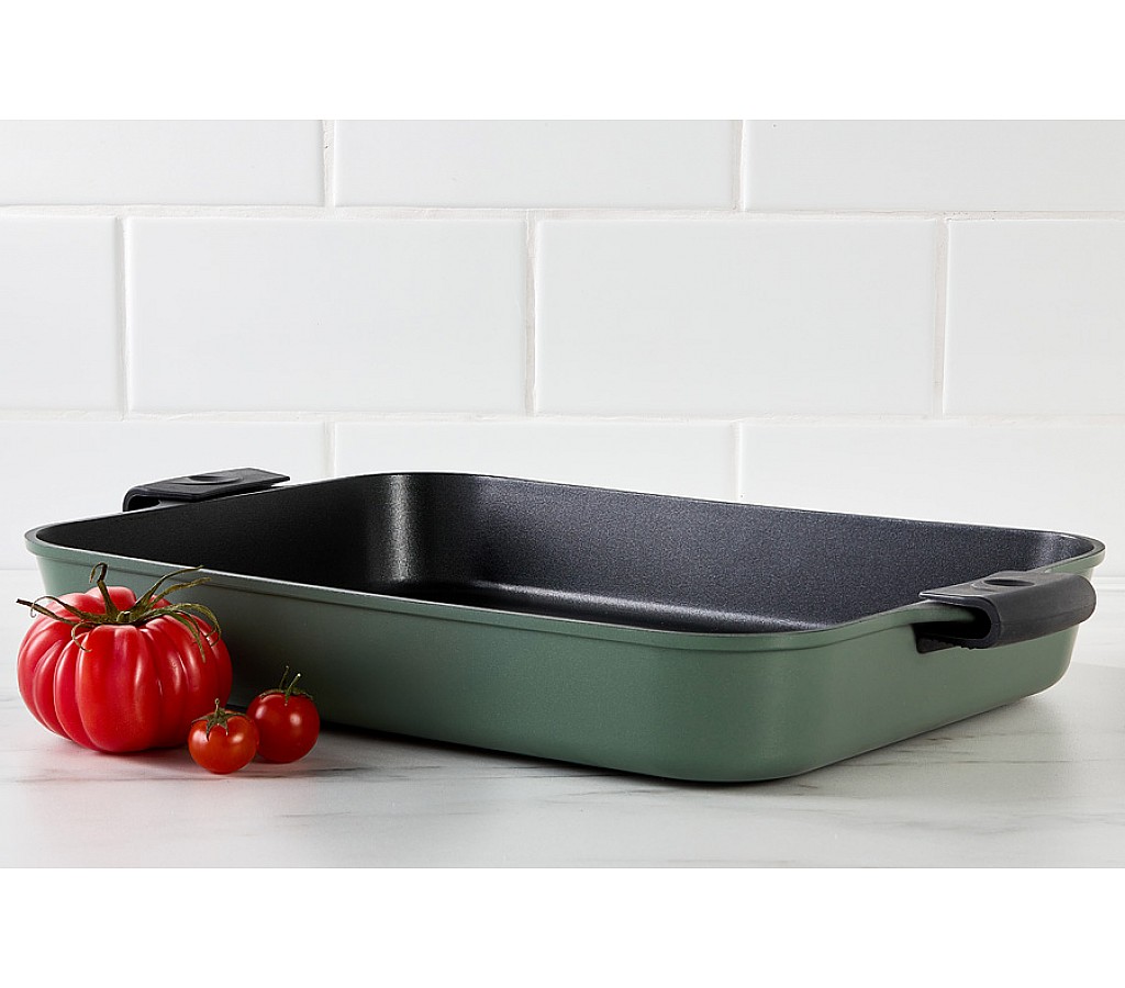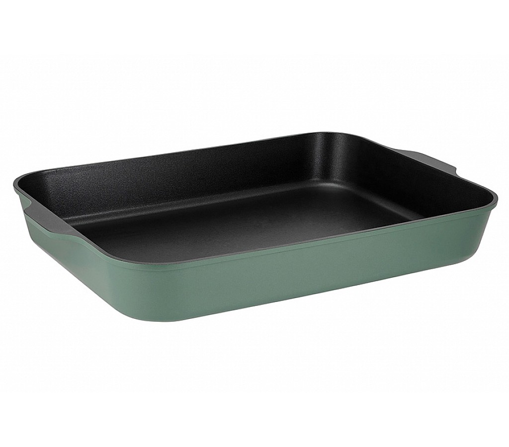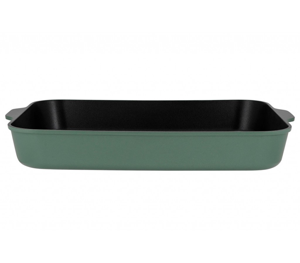 Форма для запекания Agile, зелёная, 38x28,5x5,5 см. Форма для запекания из литого алюминия с антипригарным покрытием. Для всех типов плит, включая индукционные. Можно мыть в ПММ. Использовать в духовке до 210 градусов