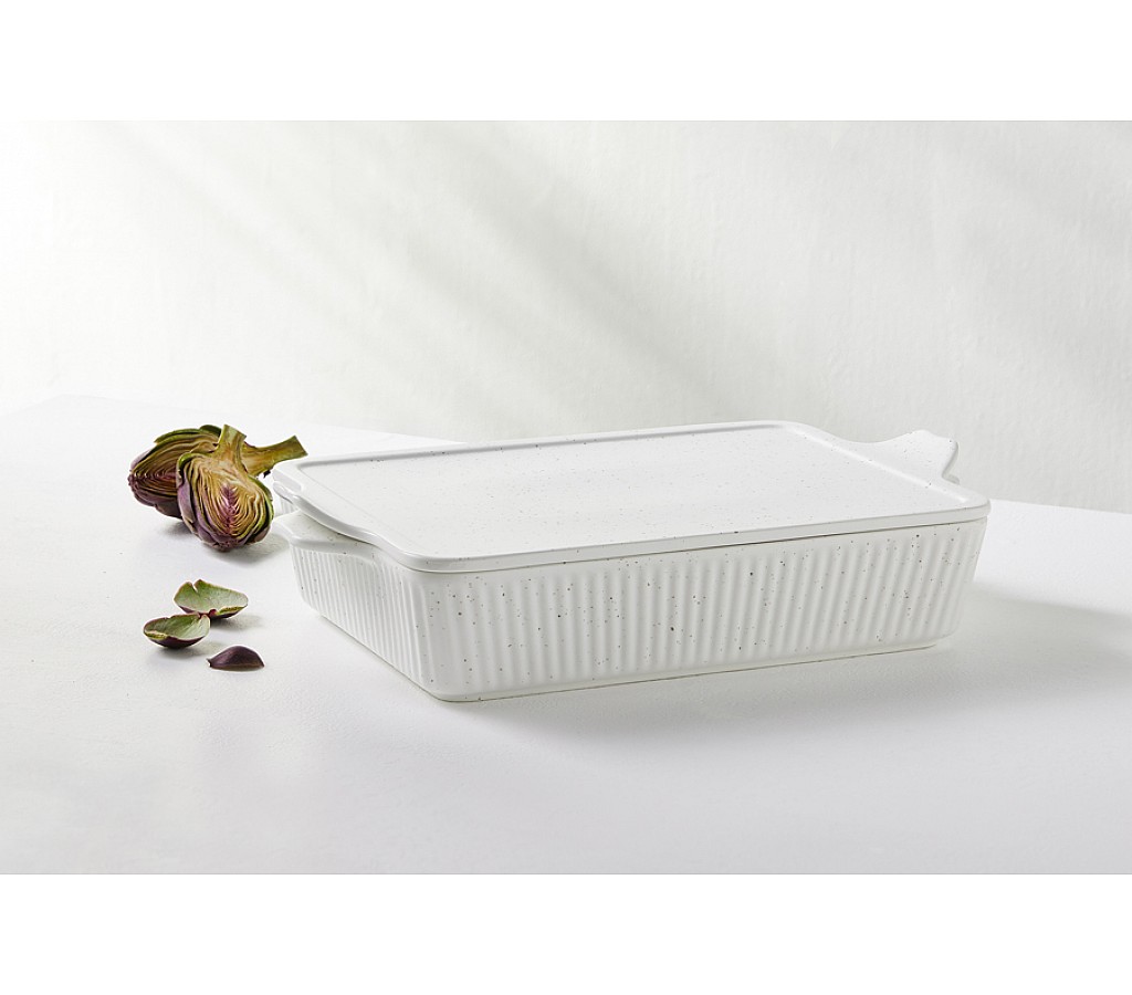 Форма для запекания Speckle 28х20 см с крышкой прямоугольная молочная