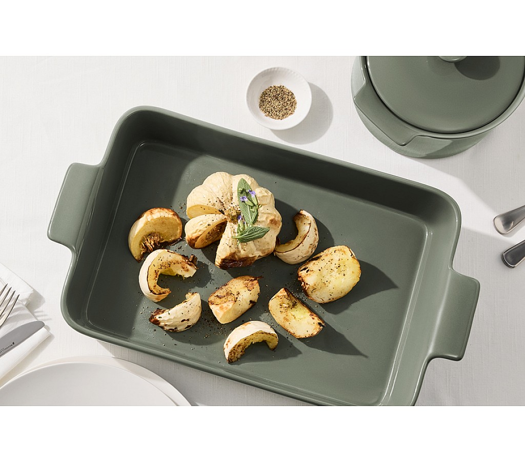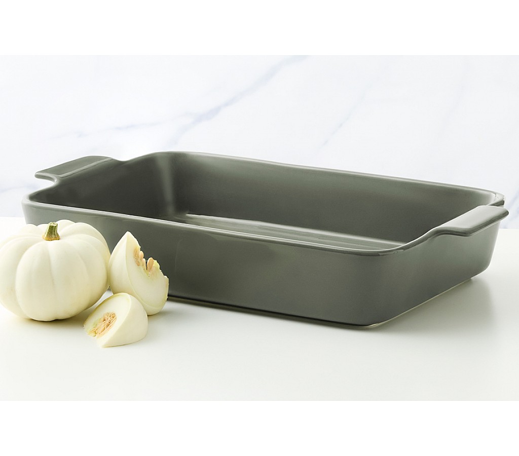 Форма для запекания, 36х24 см, фарфор P, прямоугольная, серо-зеленая, Indulgence. Подарочная упаковка. Мыть тёплой водой с применением жидких моющих средств. Можно использовать в СВЧ, духовке (до 200 градусов), холодильнике и мыть в посудомоечной машине.