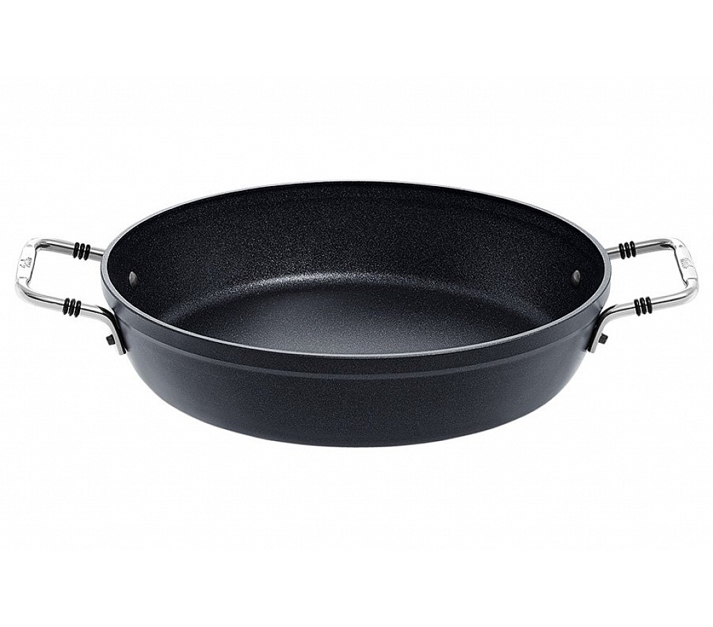 Сковорода сервировочная Fissler, серия Adamant, 28см Для приготовления блюд в духовке и подачи блюд на стол прямо на сковороде с пылу, с жару. Корпус сковороды сделан из литого алюминия.