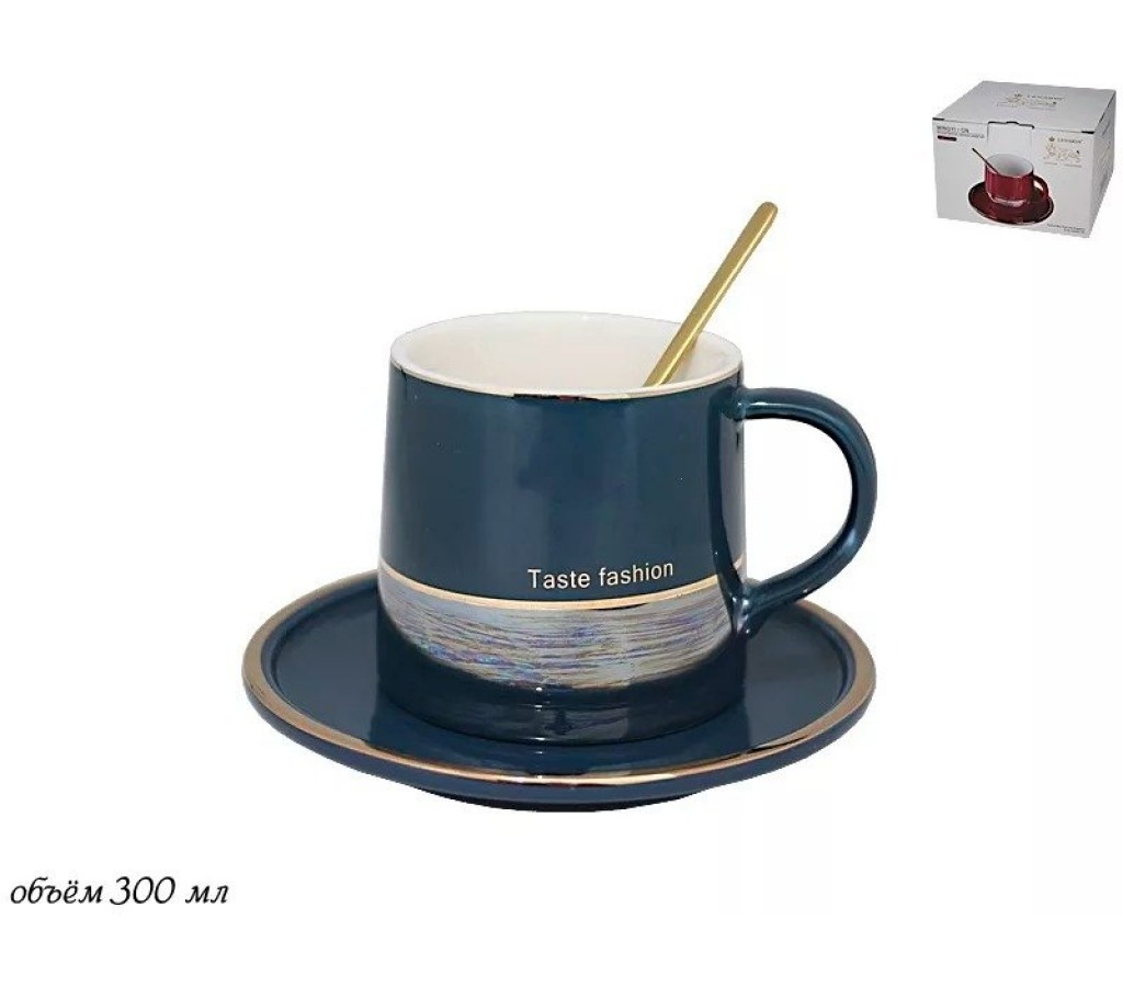 Чайная пара Believe Lenardi синяя 300 мл с ложкой. Рекомендуется мыть руками. Подарочная коробка.