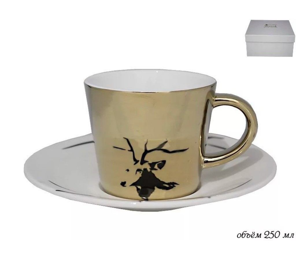 Чайная пара Lenardi Олень 250 мл. Не рекомендуется использовать в микроволновой печи и мыть в посудомоечной машине, по причине возможного повреждения декоративного золотого покрытия. Подарочная коробка.