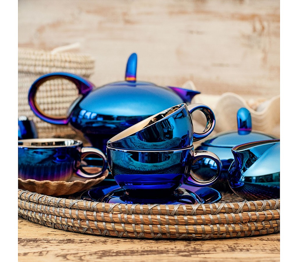 Чайная пара выполнена из фарфора высочайшего качества и покрыта яркой синей эмалью, глядя на которую в памяти всплывают приятные моменты о морских путешествиях. Если вы уже являетесь счастливым обладателем сервиза из коллекции «Мария-Тереза» на 6 персон, но у вас собирается больше гостей вы сможете приобрести дополнительные чашки из этой линейки.