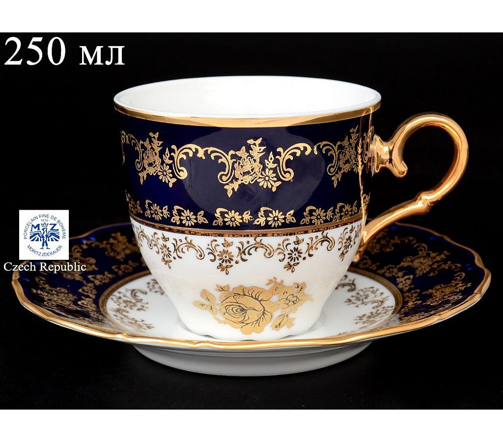 | Чашка с блюдцем 250 мл Офелия Золотая роза Кобальт Мелкий узор | |